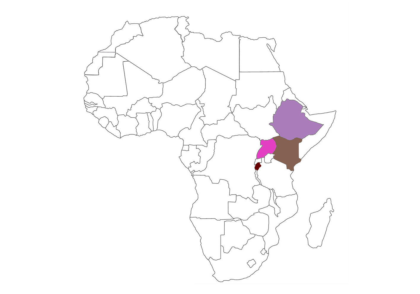 Ethiopia , considered the cradle of coffee, is in fourth place in the ranking of coffee producers with 460,000 tons of annual production. This is particularly surprising considering that in Ethiopia coffee is typically grown in small and tiny plots as so-called forest or garden coffee. It is very rare to find the highly professional, large farms with their own washing stations that are typical of other growing countries. The coffees grown and harvested by small farmers are therefore processed together with the coffees of other farmers in cooperatives - it is this mixture that makes Ethiopian coffee unique. The growing regions of Sidamo and Yirgacheffe are rightly world famous - and at the same time at risk: rising temperatures and falling rainfall due to climate change are already causing major problems. In the future, up to 60% of cultivated areas will be at acute risk.